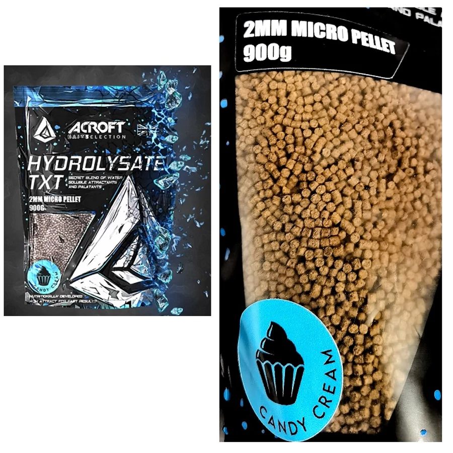 Ez a komplex pellet nagyon jól tolerálja az édes ízeket, ebből született a Candy Cream ami egy titkos édesitő szer keverekből, és egy krémes aroma optimális használatából tevődik össze. Egyértelműen az Acroft legjobb hidegvízi pellete, ajánljuk kiolvadástól 15c-os vízhőmérsékletig. Melegebb vízhőmérsékleten vonza a fehérhalakat. A tasak tartalmát mindig rázzuk fel mielőtt bekevernénk.
