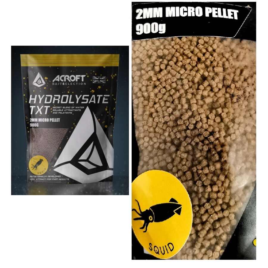 A Squid (tintahal) egy természetesen erős, jellegzetes, markáns aromával és gazdag halízzel jellemezhető micropellet. Jól emészthető, kevés olajat tartalmaz, gazdag fehérjében és esszenciális aminosavakban, étvagy gerjesztő anyagok kibocsátása jellemzi, így minden vízhőmérsékleten erős táplálkozási reakciót serkent. Ideális 12C fok feletti hőmérsékletű vizeken, mélyebb bányatavakon. Mint kiderült ennek az atraktor vegyületnek a titka egyrészből abból adódik, hogy ne keverjük más atraktorokkal, valamint, hogy sebészi pontossággal kell eltalálnunk az adagolását. Az Acroft sikeresen megoldotta a feladatot, egyszerűen csak víz hozzáadását javasoljuk ehhez a pellethez. Method horgászatra, vagy PVA bagbe szárazon töltve ajánljuk.