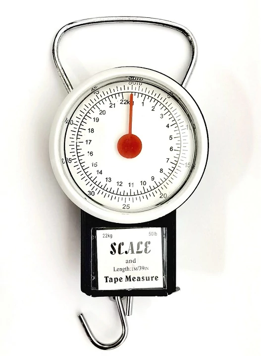 BAGGAGE SCALE ANALÓG MÉRLEG MÉRŐSZALAGGAL 22kg-ig használható analóg mérleg, amely egy 100cm-es beépített mérőszalaggal is rendelkezik. analóg szerkezettel rendelkezik, így nincs szükség elemre a működéséhez. Szúnyog Horgászbolt - www.szunyoghorgaszbolt.hu