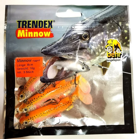 A Behr Trendex minnow egy ellenállhatatlan műcsali a ragadozók számára. A Behr Angelsport teszthorgászai legfőképpen csuka és nagytestű pisztángfélék horgászatára ajánlják.