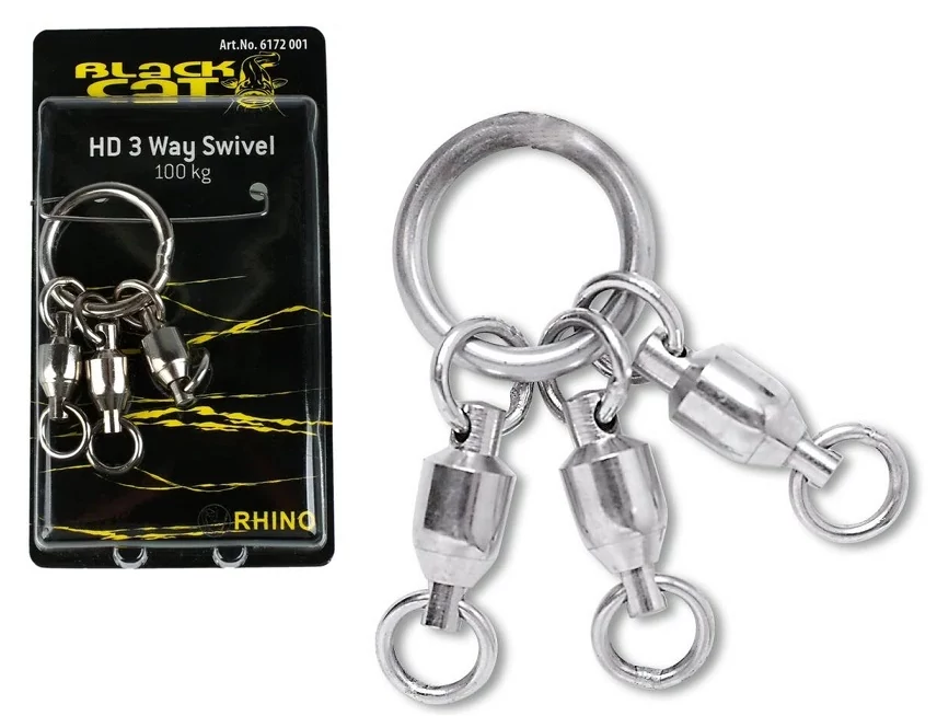 BLACK CAT HD 3 WAY SWIVEL HÁRMAS FORGÓ 100KG Speciális háromállású forgó golyóscsapágyakkal, stone righez és freestyle összeállításokhoz. 1db/csomgag. Szúnyog Horgászbolt - www.szunyoghorgaszbolt.hu
