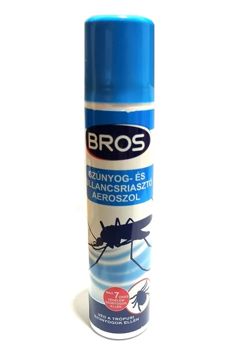 BROS SZÚNYOG ÉS KULLANCSRIASZTÓ AEROSZOL 90ML (7ÓRÁS) BROS szúnyog és kullancsriasztó aeroszol 90 ml a szúnyogokkal szemben akár 7 órán át, kullancsokkal szemben akár 4 órán biztosít hatásos védelmet.