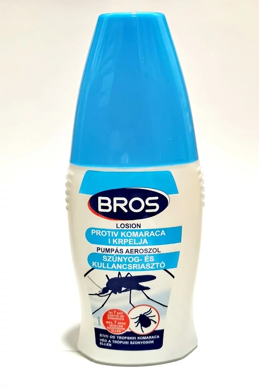 BROS SZÚNYOG- ÉS KULLANCSRIASZTÓ PUMPÁS AEROSZOL 50ML Hatékonyan elriasztja a szúnyogokat legfeljebb 7 órán keresztül, a kullancsokat legfeljebb 4 órán keresztül, és a feketelegyeket legfeljebb 8 órán keresztül. 5 órán keresztül védelmet biztosít az ázsiai tigrisszúnyogokkal szemben is. Szúnyog Horgászbolt - www.szunyoghorgaszbolt.hu
