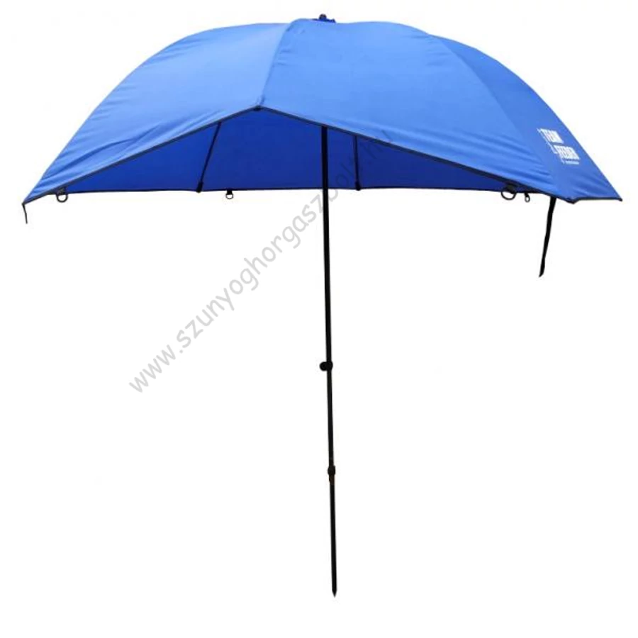 Az ernyő magassága szabályozható, legmagasabb állásban 180 cm (alsó peremtől a talajig). A hozzá adott leszúró erős, menetes kialakítást kapott, ezért nem igényel külön ernyőtartó leszúrót. A fej 45 fokos szögben dönthető, így nem akadályozza a horgászt dobás közben sem. A rudazat végein az anyag plusz erősítést, borítást kapott, ezzel megnövelve az ernyő élettartamát ezen a ponton. Bármely feederhorgász kelléktárában hasznos kiegészítő lehet, bátran ajánljuk bárkinek, aki kedveli a minőségi felszereléseket! Stílusos, kék TEAM FEEDER dizájnnal kínáljuk.