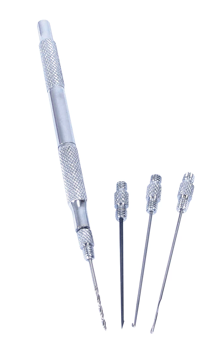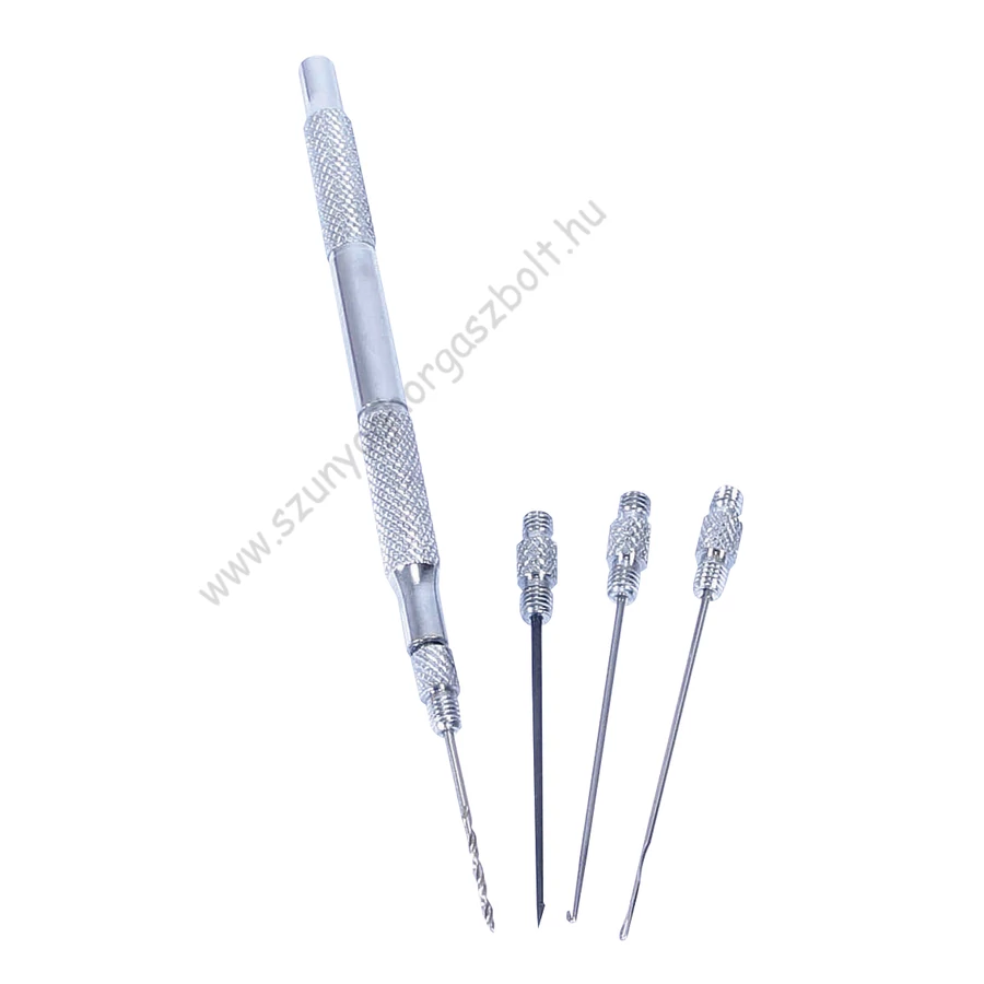 Négy az egyben rendszerű csalifűző készlet.A nyélrészben csavaros menettel csatlakoztathatóak a különböző fejek.Egyszerű gyors használatot tesz lehetővé.