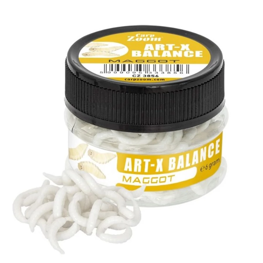 Gyakran előfordul, hogy már nincs lehetőség élőcsalit vásárolni, vagy épp a nap végén szeretnénk egy gyors pecára leugrani a vízpartra. Ilyenkor van nagy segítségünkre az Art-X Balance csali imitáció család. A különleges, aromatizált folyadékba áztatott utánzatok mind állagukban, mind kinézetükben a végletekig hasonlítanak az élő megfelelőjükhöz. Anyaguknál fogva horogállóak, használat után a tégelybe visszahelyezve feltöltődnek annak vonzó illatával, így többször is használhatóak. Érdemes egy-egy tégellyel betárazni belőle, mert szükség esetén nagy segítségünkre lehet.