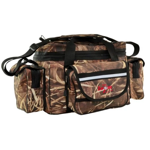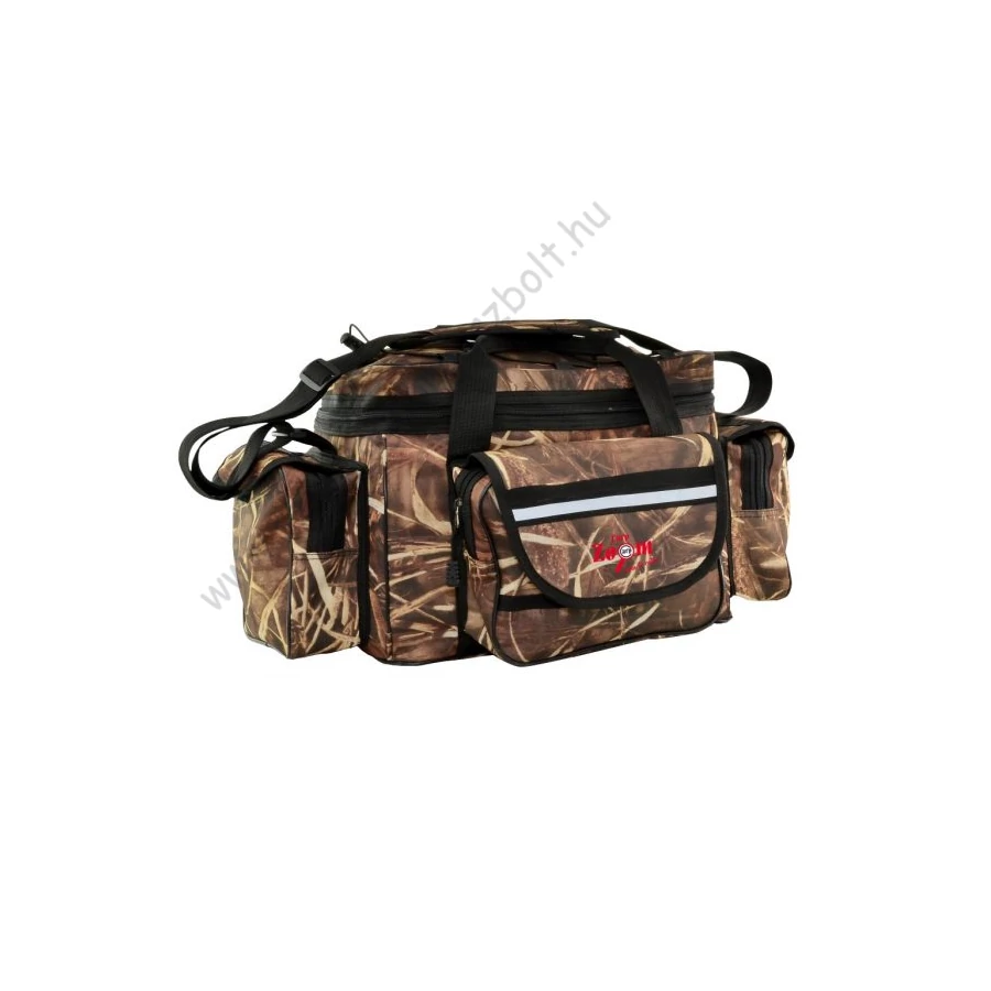 Közkedvelt Camou mintázatú táska anyaga strapabíró, esőálló. A külső zsebek zárhatóságát az erős cipzár mellett egy tépőzáras fül is biztosítja, emellett a táska hátsó részén egy nagyobb, sűrű hálós zseb is helyet kapott. Belső részét 3 db párnázott, tépőzáras fakkelválasztóval fantáziánk szerint alakíthatjuk.