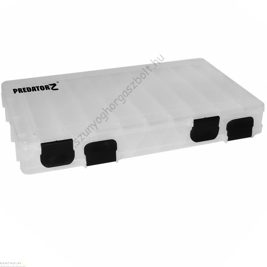Mindkét oldalon nyitható műcsalis doboz, amelyben könnyen és praktikusan tárolhatjuk műcsalijainkat. Elosztásának köszönhetően akár a nagyobb méretű műcsalik is könnyen elférnek.