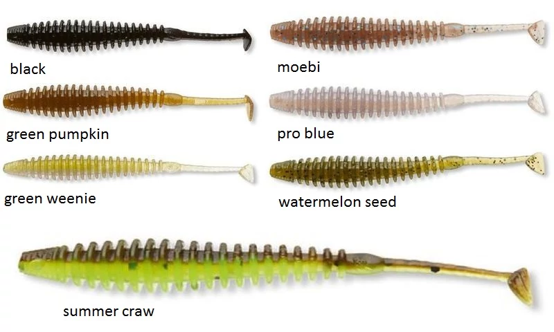 Apró gumicsali mikroméretű, háromszög alakú faroklapáttal. Ideális apró jigfejjel vagy drop shot szereléken is. A testen található lamellák gondoskodnak az erős rezgéshullámról, így a különösen meghorgászott, agyondobált vizeken jelentheti ez a gumi a sikert! A bordák ideálisan aromázhatók, sokáig megtartják a felvitt illatot.