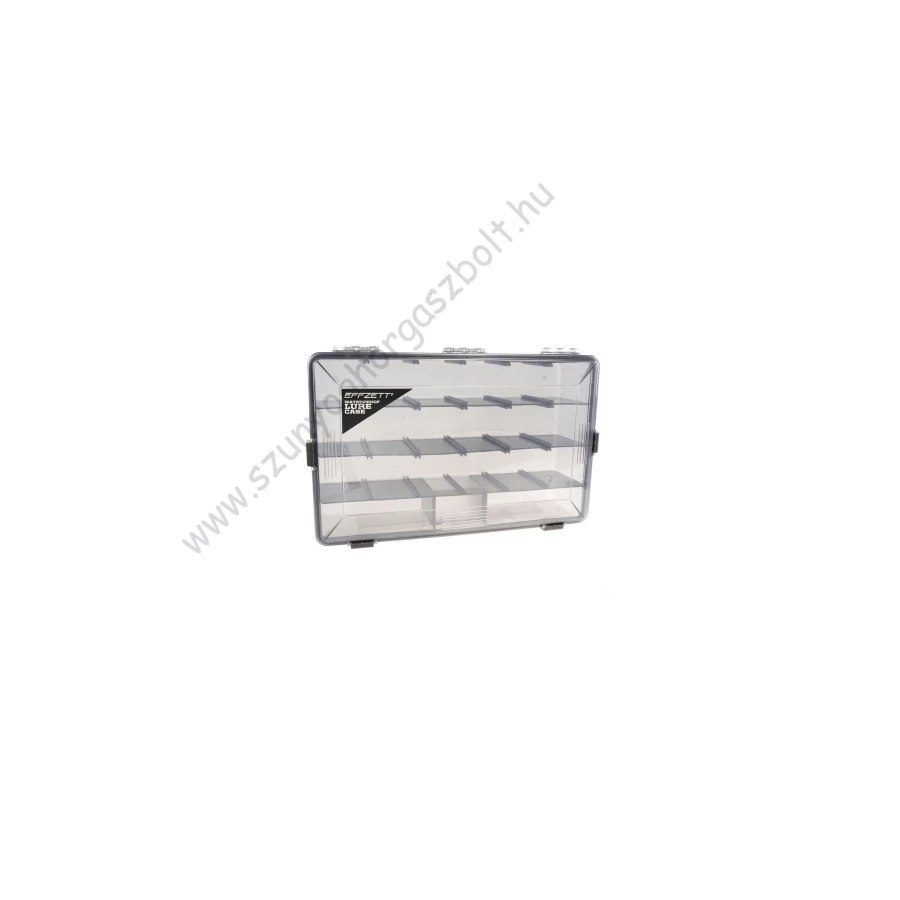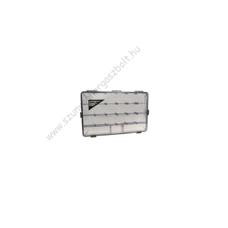 Manapság csalik egyre fejlettebbek évről évre, ezért a csalitárolóknak is folyamatosan fejlődniük kell. Az EFFZETT vízálló csali tartó dobozok a következő lépés a tökéletes csali tárolására. A dobozok a peremükön végéfutó tömítéssel vannak ellátva, és 4db zárral minden oldala zárható, így biztosítva, hogy a nedvesség semmilyen körülmények között ne hatoljon be a dobozba. A gunsmoke színű, UV szűrős ABS műanyag alapanyagú doboz a káros UV sugaraktól is megvédi a csalikat. A dobozok különböző méretekben vásárolhatóak meg, hogy különböző méretű csalikat lehessen benne tárolni.