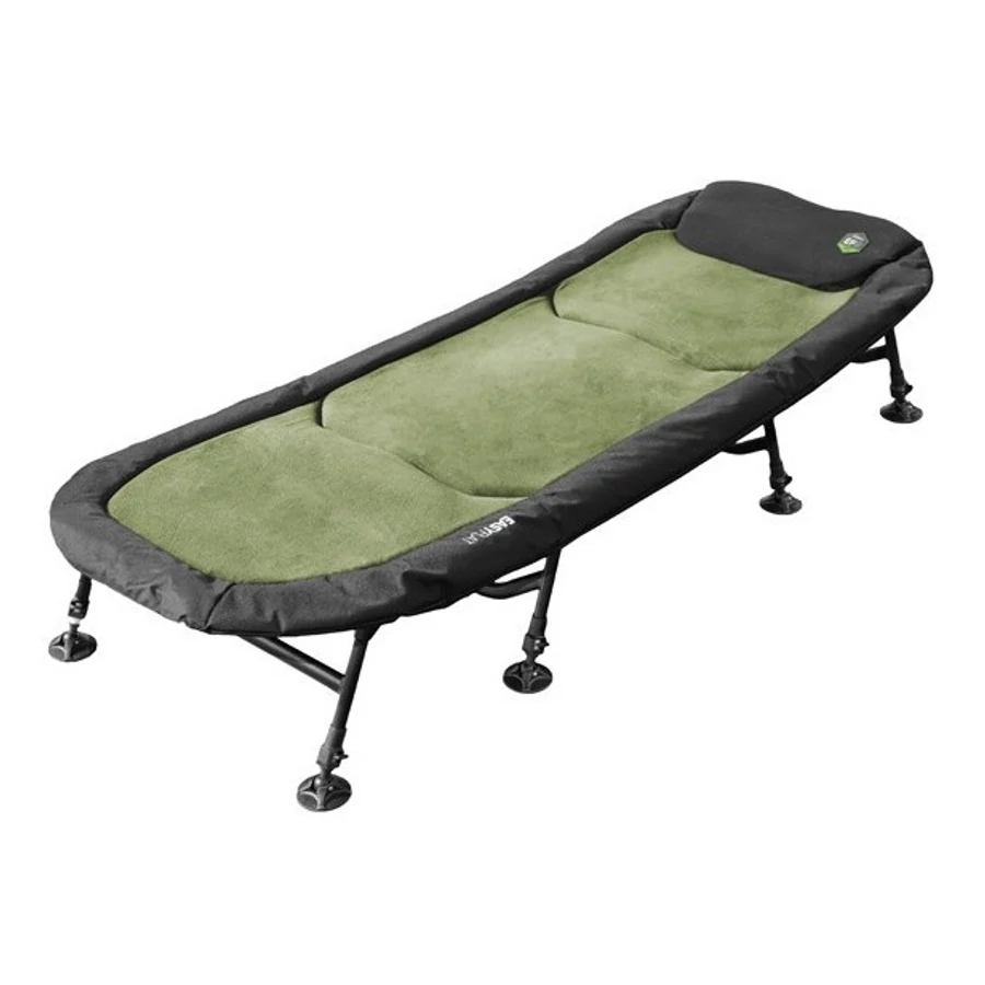 Ez a modell a bizonyíték arra, hogy egy egyenes szerkezetű nyolclábas horgászágy nem kell hogy egy vagyonba kerüljön. Az EF8 a belépő modell a kényelmes ágyak közé, mely a lábainak köszönhetően nagyon stabil. A matrac mérete 192x75cm. A sártappancsok gömbcsúklós szerkezetűek, így bármilyen egyenlőtlen terephez alkalmazkodik. A matrac felülete khaki színű filc anyagból készült, mely kényelmes, puha és meleg. A fejrész szintén filc, viszont fekete színben. A matrac keménysége állítható a láb illetve a fej rész alatt lévő erős kötél után húzásával. A felső fej rész alatt lévő lábpár rögzíthető, a nem kívánt elmozdulás ellen. Az ágy magassága alap helyzetben 33cm, a teleszkópos lábak kiengedése után 43cm. Összerakáskor az ágyat fixálni tudja műanyag csatos, leszedhető heveder segítségével. Műszaki paraméterek:
