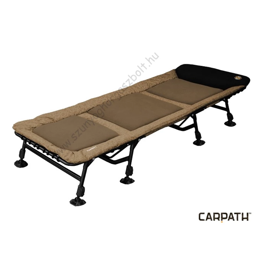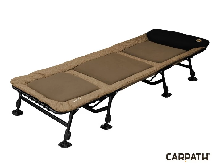 Extra könnyű és kényelmes, egyenes szerkezetű horgászágy, melynek köszönhetően a horgászással töltött idő pihenés lesz. Alapját extra erős, 8 lábas szerkezet alkotja, mely az utolsó részletig ki van dolgozva. Az ágy lábainak felülő része(tappancsai) robusztusak és rugalmasak, lehetővé téve az alkalmazkodást bármilyen terepen. A fej alatt lévő lábpár blokkolható, hogy elkerülje a nemkívánatos elmozdulást. A szerkezeten nagyon kényelmes matrac van felfogatva. A felfogatása extra erős gumihevederek és megerősített anyag kombinációja. Ez lényegesen csökkenti a matrac kopását, több év használat után is, valamint megőrzi az összes tulajdonságát. A nagyon magas kényelem ami jellemzi ezt a vizuálisan érdekes ágyat. A vastag matrac a 600D a Carpath terepmintás anyag és a kellemes filc réteg kombinációja mely a fejrészig húzódik. A könnyű szállításhoz az ágy fel van szerelve két hevederrel melyek az oldalán csatlakoznak.