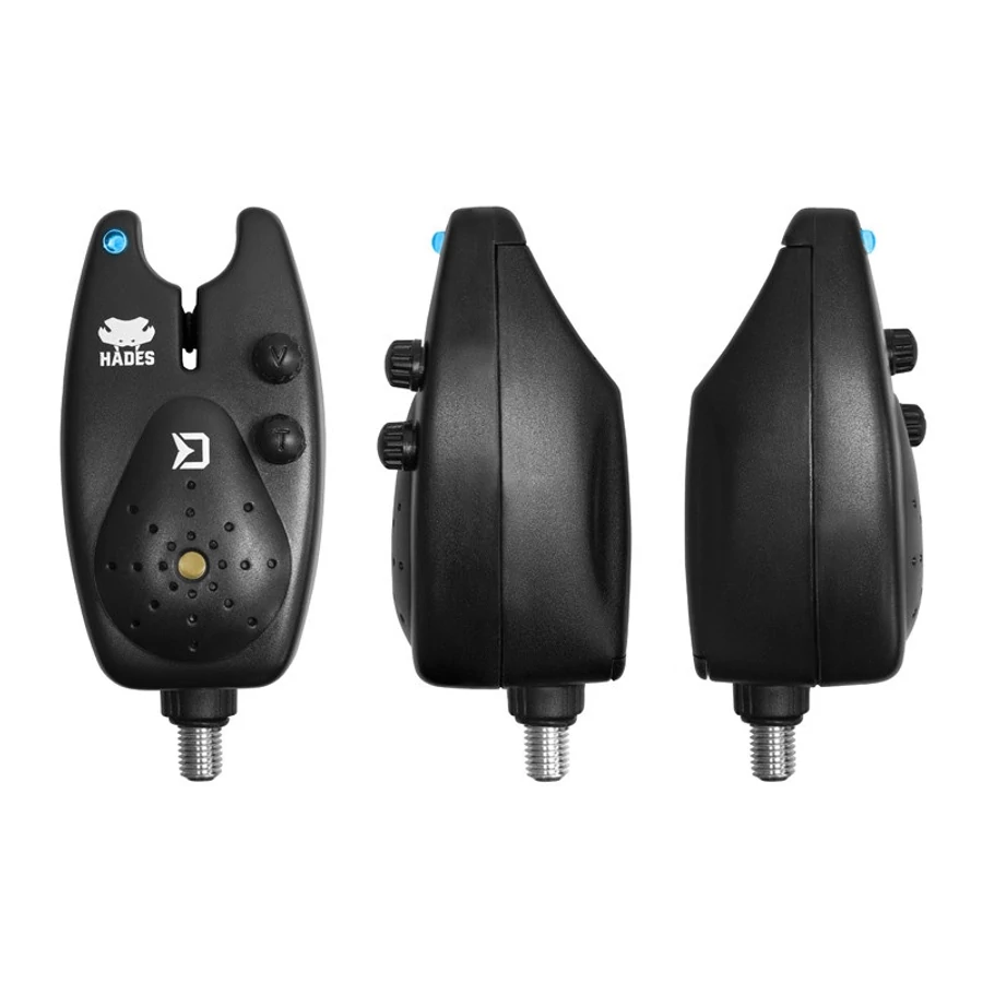 A Delphin HADES, a megfizethető elektromos kapásjelző. Alapvető fény- és hangjelző funkciókat kínál. Egy villogó LED-del van felszerelve, és mind a húzós, mind az ejtős kapást jelzi. Kezelése nagyon egyszerű, bárki megbirkózik vele. Az alsó részén van egy 2,5 mm-es jack-csatlakozó, így lehetséges láncos vagy merev karú swinger csatlakoztatása beépített fényjelzéssel. Az elején két csavarós kapcsoló található. A felső hangerőszabályzó ki/be kapcsolóként is szolgál. Az alsó kapcsoló segítségével beállíthatja a kívánt hangmagasságot. A kapásjelző vízálló, ezért esős napok alatt sem kell aggódnia. Az energiát 1 x 9 V-os elem biztosítja.