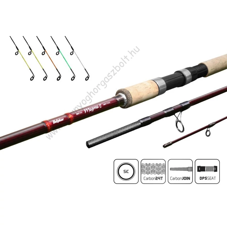 Delphin Magma DUO. A sorozatot bővítettük két modellel, úgynevezett hosszabbítós tagos. Ennek köszönhetően egy botban két különböző méretet kapunk. A kombinációk 300-360 vagy 330-390cm.