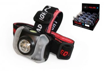 Könnyű és rendkívül praktikus fejlámpa, amely a szokásos fehér fény mellett piros fényt is képes kibocsátani. A piros fényt a horgászok akkor fogják értékelni, ha nem szeretnék elriasztani a közelben tartózkodó halakat. A POLAR_X 5 fehér és 4 piros LED-et tartalmaz. A lámpa aktiválása egyetlen gomb segítségével történik. A világítás a gomb ismételt megnyomásával állítható be: 5 fehér dióda, 4 piros dióda, villogó piros diódák. A praktikus forgatható lámpafejnek köszönhetően szükség szerint állítható a lámpa lejtése. A fejhez való rögzítésre az állítható pántok szolgálnak.