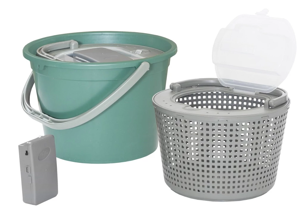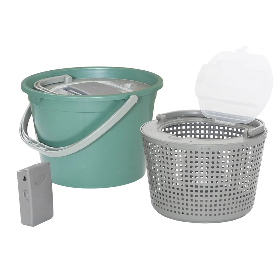 Kivehető betéttel rendelkező csalihalas vödör, mely levegőztetővel kombinálva kerül forgalomba, melynek köszönhetően csalihalaink sokáig élve maradnak. A kivehető betét megkönnyíti a megfelelő hal kiválasztását. Praktikus eszköz a ragadozó horgászat szerelmeseinek.