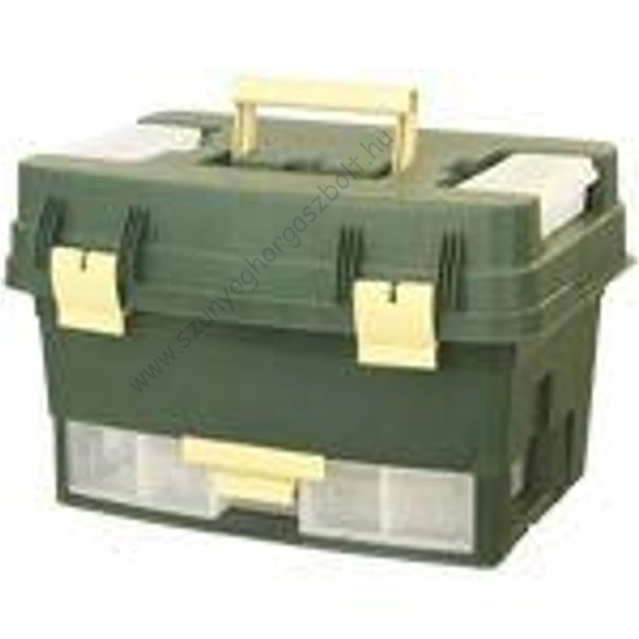 Speciális kialakítású nagy méretű pergetőláda. Ha az erős patentzárral ellátott tetőt felemeljük, egy speciális műcsali tároló rekeszt találunk. Előnye, hogy a wobblereket, villantókat, kanalakat, twistereket, "fejjel lefelé", azaz a hármas horognál lógatva tároljuk. Az eredmény kiváló! Rendezett sorokban, áttekinthetően sorakoznak egymás mellett, nem kell az összeakadt horgokat kibogozni, és ami a leglényegesebb, hogy egy mozdulattal kiemelhetjük a választott műcsalit. A láda egy speciális műanyagból készült, kihúzható fiókkal büszkélkedhet. A legnagyobb melegben csomagolás nélkül tárolhatjuk gumihalainkat, twistereinket.