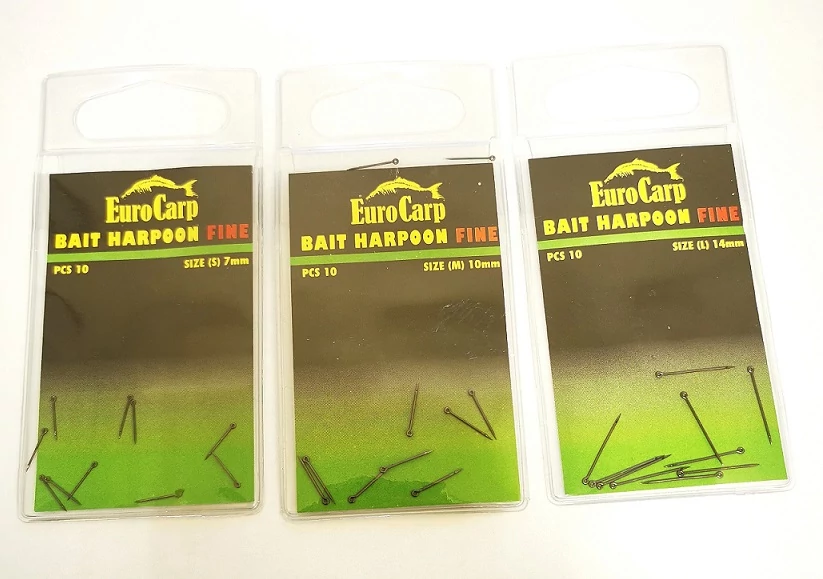 EUROCARP Bait Harpoon Fine csalitüske kiválóan alkalmas a kisebb, repedésre hajlamosabb csalik felkínálására. A vékony finom csalitüske súlya is könyebb, mint a normál társaié, így a feltűzött pop-up vagy waftrers csali felhajtó erejét kevésbé befolyásolja. Egy tasakban 10 db tüskét találunk. Három méretben kerül forgalomba:
