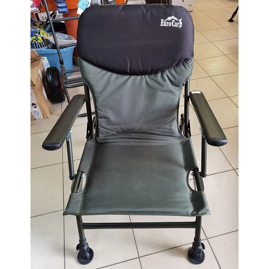 Masszív, könnyű, viszonylag kis helyet foglaló karfás mini fotel. Lábai teleszkóposak, tappancsai dönthetők, így egyenetlen terepen is stabilan felállítható. A horgász szék háttámlájának dölésszöge fix.