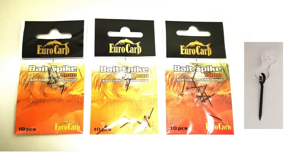 Az Eurocarp szilikonfüles csalitüske előnye, hogy nem kell hajszálelőkés horogelőkét kötnünk vele, hiszen a szilikon fülecskének köszönhetően bármikor ráfűzhetjük a horog öblére, így azonnal használható. Horgászat közben ha mégis visszatérnénk a horgon történő közvetlen csalifelkínálásra, egy mozdulattal eltávolítható.