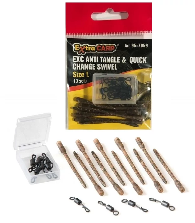Az Extra Carp gubancgátlós gyorskapocs szettje nem hiányozhat egy bojlis táskájából sem. Nagy előnye, hogy segítségével egyszerűvé válik a végszerelék, előke cseréje. Egy csomagban 10db erős gyorskapocs található, a hozzá passzoló gumihüvelyekkel, melyek 5,5cm hosszúak.
