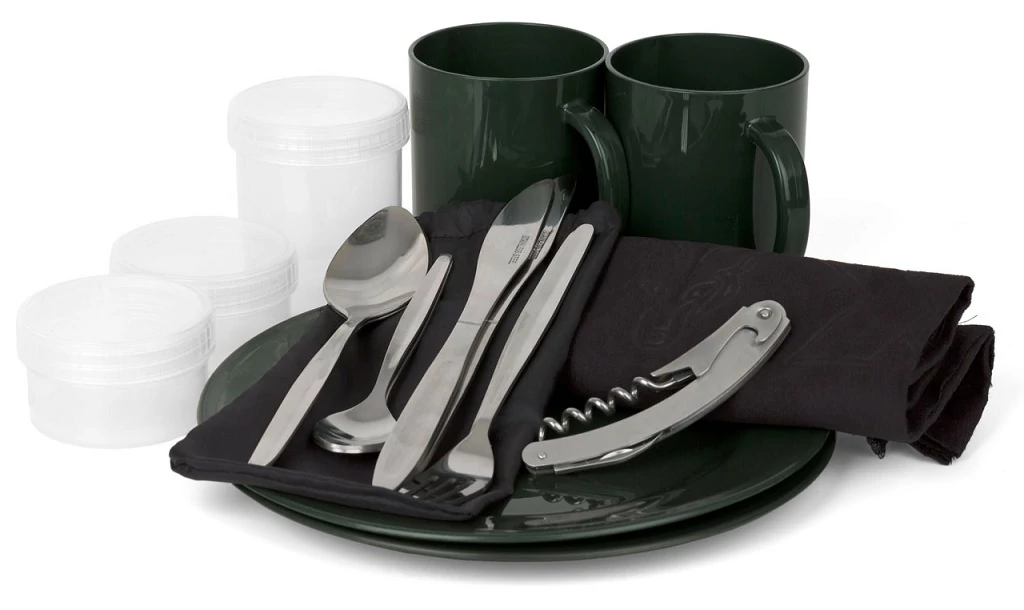 | Táborozás kellékei | Étkészlet, edények, vizes kannák |