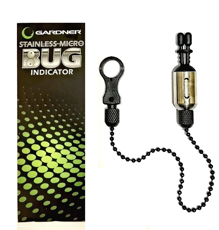 GARDNER STAINLESS MICRO BUG INDICATOR LÁNCOS SWINGER Minőségi, rozsdamentes acélból készült mini swinger. Súlya 22g, A fém tetst mérete: 12mm x 21mm. a lánc hossza 15cm. Szúnyog Horgászbolt - www.szunyoghorgaszbolt.hu