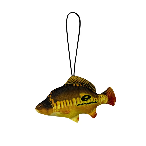 Ez az egyediség kiváltképp igaz erre a mini ponty alakú és mintájú, akasztóval ellátott mini párnára, mely megállja a helyét díszként, bárhol a lakásban, de a kocsik visszapillantó tükrén lógva is egyedi kis díszként funkcionál.