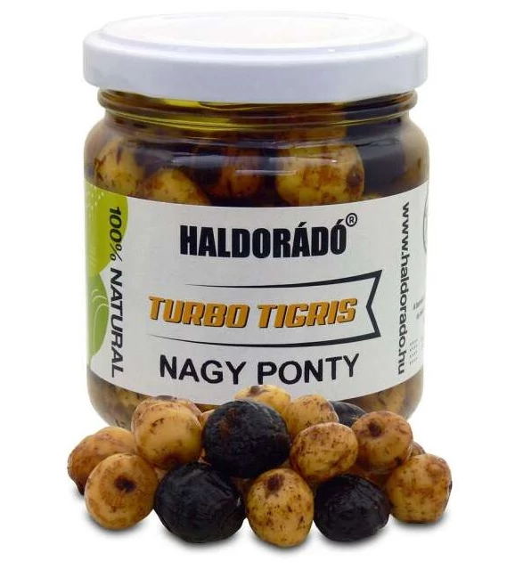 A Turbo Tigris olyan csalizásra szánt termékük, amely nagyméretű XL tigrismogyorót, valamint fekete tigrismogyorót is tartalmaz. Ezeket a naturális, ropogós halcsemegéket a legfogósabb aromákba áztatták, az ízesítések pedig passzolnak az elérhető etető mogyorókhoz, azaz kapható: Natúr, N-Butyric Acid, Chilis Fahéj, Mézes Pálinka, Nagy Ponty, illetve a 2021-es évtől már Kókusz ízesítéssel is!
