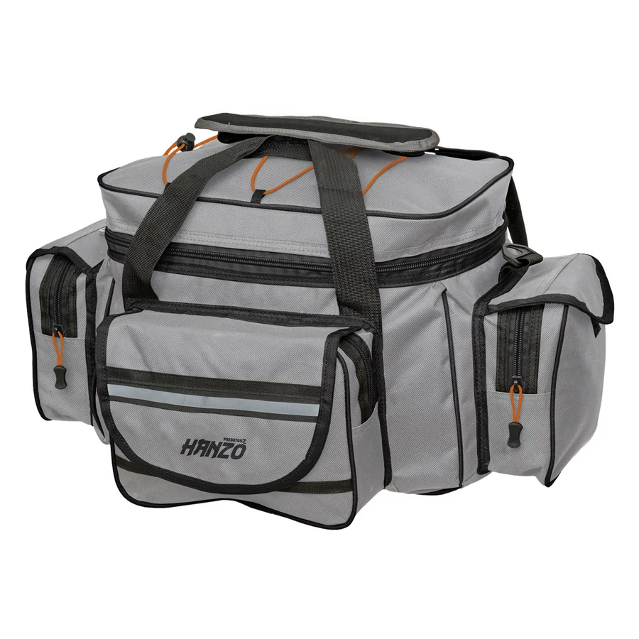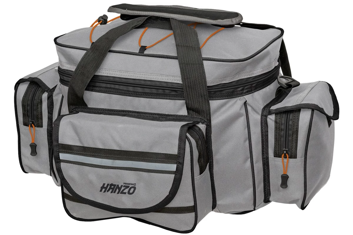 HANZO CARRYALL PERGETŐTÁSKA 52X30X28 CM Kellően nagyméretű, 52x30x28 centiméteres horgásztáska ahhoz, hogy elnyeljen minden olyan felszerelést és kiegészítőt, amelyekre a mindennapi horgászatok alkalmával szükség lehet. A központi, egybefüggő, nagy belső tér jó pár twisteres doboz befogadására képes. Oldalain és az első felén is tekintélyes méretű zsebek kaptak helyet. Anyaga erős, cipzárjai strapabíróak, az aljára gumi tappancsok kerültek. Vállpánttal és hord füllel készül. A felsőrészen található elasztikus rögzítő kötél már csak hab a tortán. Ennek nagy hasznát vehetjük változékony időjárás alkalmával, mert így pillanatok alatt hozzáférhetünk az alatta tárolt pulóverhez, esőkabáthoz. A PZ Hanzo Carryall pergető táskát elsősorban pergető horgászoknak szántuk, de békéshalazás során is jó választás lehet. Szúnyog Horgászbolt - www.szunyoghorgaszbolt.hu
