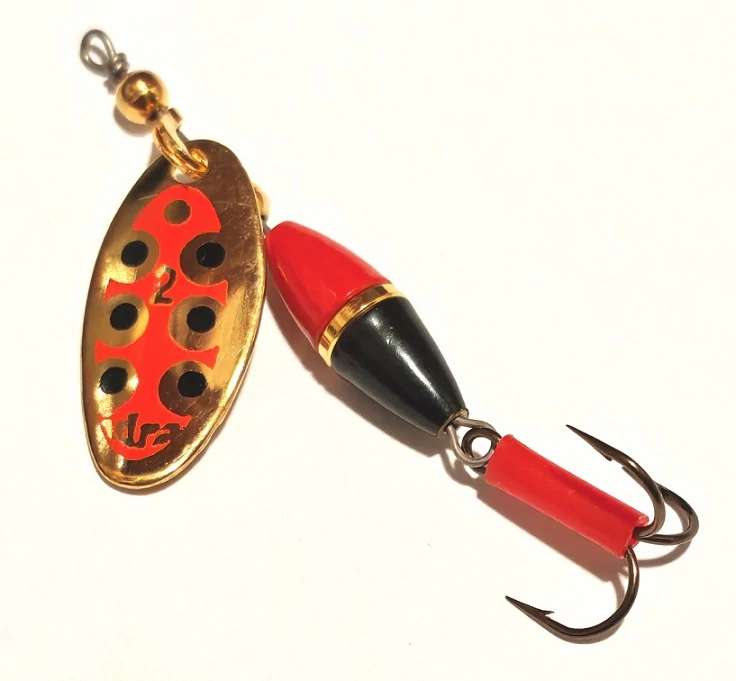 IDRA KÖRFORGÓ VILLANTÓ FEKETE-ARANY-PIROS 2-ES 6,7G Az Idra fém műcsalik mára feledésbe merültek, pedig régen rengeteg szép halat adtak a horgászoknak. A csali minőségi, rozsdamentes, ídőtálló anyagból készültek. Jelen típus teljes hossza kb 5,5cm, súlya 6,7g. Kis mérete ellenére súlya jelentős, jól dobható csaliról beszélünk, színezete miatt leginkább nappali, viszonylag tiszta vízben történő horgászatra ajánljuk. Szúnyog Horgászbolt - www.szunyoghorgaszbolt.hu