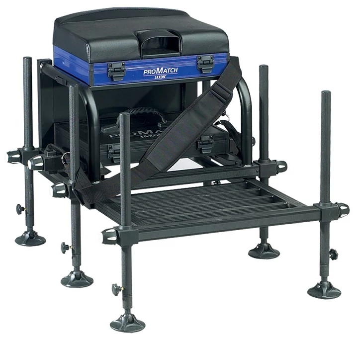 Masszív és tartós kivitel jellemzi a JAXON versenyládáját, porfestett aluminiumból készült. Kényelmes ülőfelülettel rendelkezik, a lábrács kihúzható. A rögzítő gombok is jó minőségű anyagból készültek.