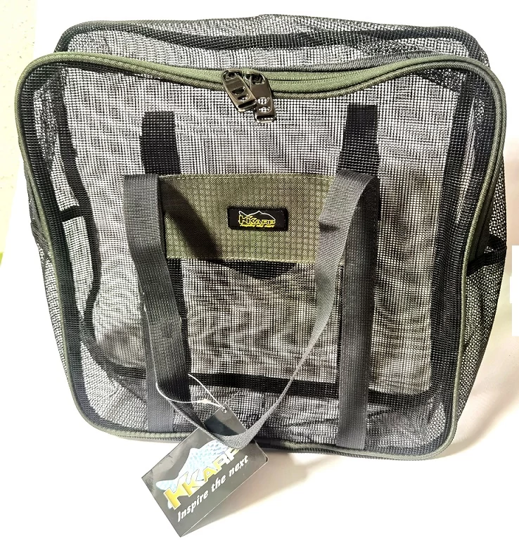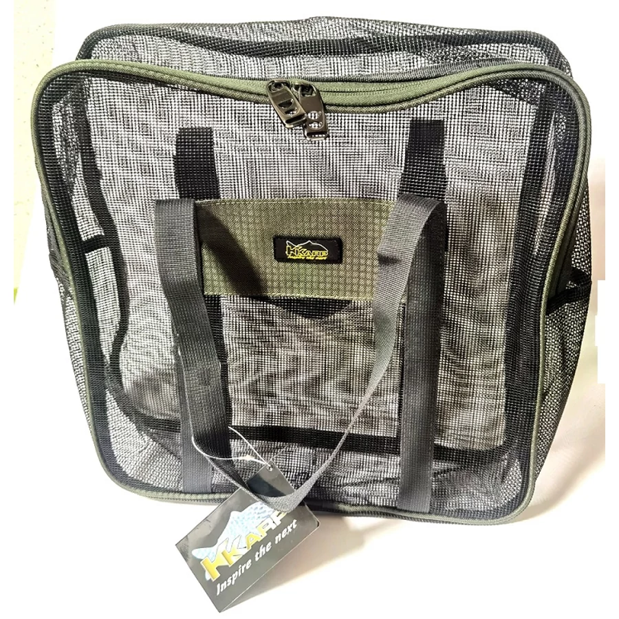 Bojli szárítására tervezett zipzáras táska, erős hordfülekkel.