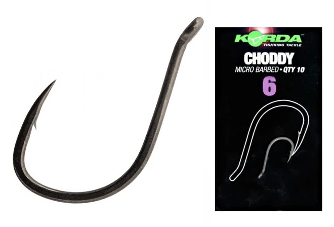 Annak érdekében, hogy a chod rig íve szabályosan folytatódjon a horoggal egy sima csomómentes kötéssel, a Choddy horogszeme kifelé van fordítva. A forma többi része az ikonikus Wide Gape horog varázslatos dimenzióján alapul, az összes velejáró akadási és haltartó képességgel együtt. A Choddy anyaga vastagabb, mint a Wide Gape-é, így tökéletes a nagy halak horgászatára nehéz terepen is.