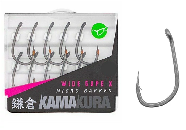 A kamakura élezési folyamat olyan horoghegyet eredményez, amely ugyanolyan éles, mint a kézzel fent horgok, csak itt éppen nem a saját időnket és energiánkat kell a tökéletes horoghegy kialakítására fordítanunk. Ráadásul biztosak lehetünk abban is, hogy ezek a horgok tökéletesek minden alkalommal, amikor kivesszük őket a dobozból. A Kamakura Wide Gape X ennek a klasszikus formának az erősebb változata. Vastagabb húsú, de sokkal élesebb, finomabb hegyet tartalmaz, mint a szabványos „X” horog. Minden bizonnyal azonban minden egyes hal után cserélni kell a horgot, mivel a hegye annyira finomra lett hangolva. Enyhén befelé forduló horog szemmel, rövid szárral, és hajlított heggyel rendelkezik. Különféle pop-up és süllyedő csali felkínáláshoz használható, és ha egyszer megakad, akkor úgy is marad. A horog hegyét viasz védi, amelyet használat előtt óvatosan el kell távolítani, valamint olyan dobozban szállítjuk, amely minden horgot biztonságosan a helyén tart. Minden doboz tíz horgot tartalmaz. A mikroszakállas és a szakáll nélküli változatok 4-es, 6-os, vagy 8-as méretben kaphatók.