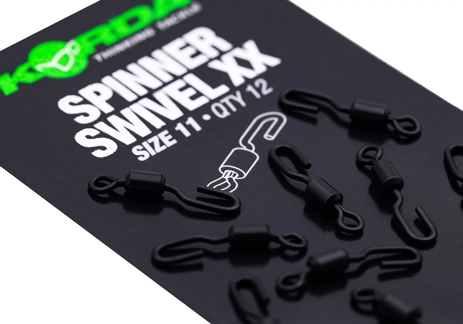 A Spinner Swivel az egyik oldalán egy kampóval rendelkezik, amelyre a horog szeme könnyen ráhelyezhető és egy Kickerrel rögzíthető. A másik végén egy normál forgószem található, amelyre egy Boom anyagból készült hurok könnyen krimpelhető. Ez mindent leegyszerűsít és kevésbé feltűnővé teszi, mivel nincs szükség fémgyűrűre a forgó részeként.