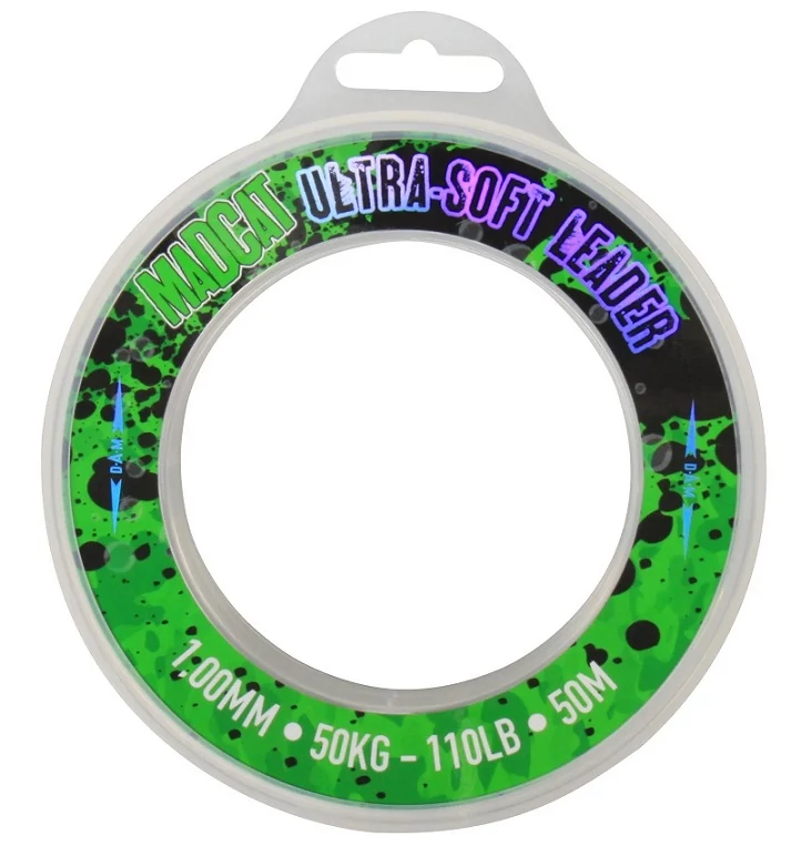 MADCAT ULTRA-SOFT MONO LEADER 50M 1,00MM 50KG Nagy kopásállóságú monofil harcsaelőkék készítéséhez. Olyan puha, hogy nagy átmérője ellenére könnyen csomózható. Szúnyog Horgászbolt - www.szunyoghorgaszbolt.hu