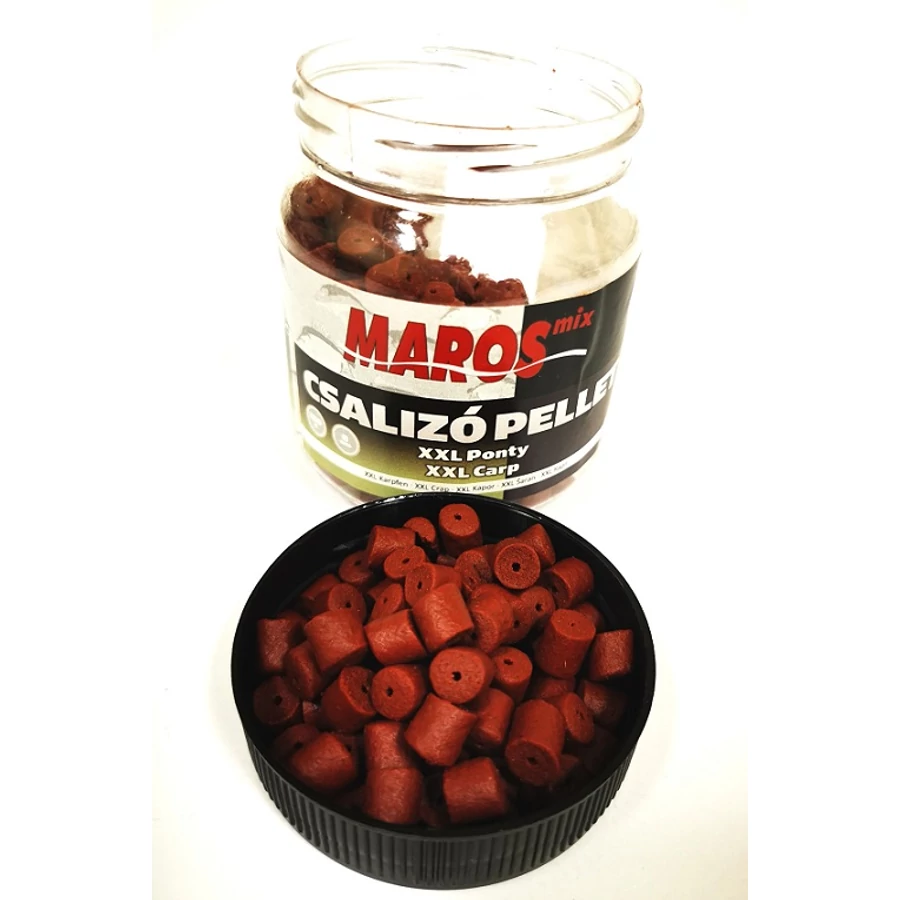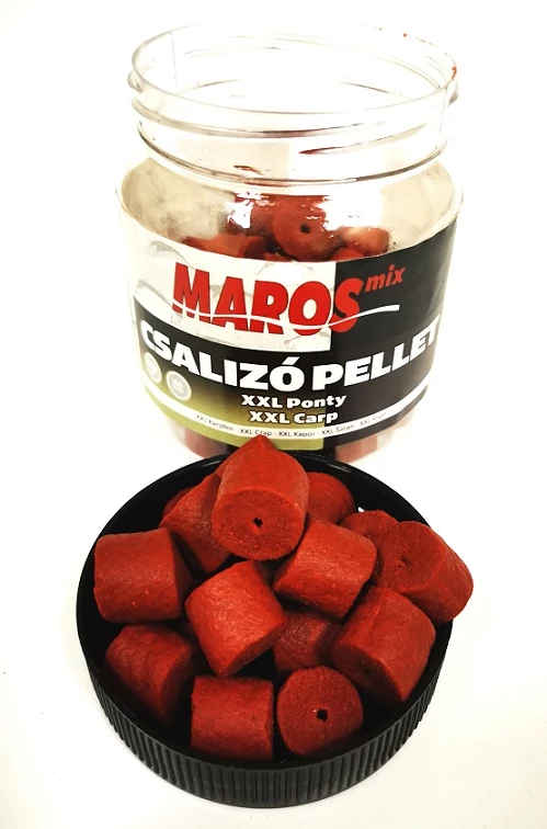 A Maros Mix XXL Ponty Pellet egy vörös színű, többféle tengeri hal lisztjével dúsított, közepes halolaj- és 40% fehérjetartalmú, süllyedő, középen fúrt pontypellet. További különleges alkotóelemei közül érdemes megemlíteni a hús-, alga- és ráklisztet is, de a domináns anyag egyértelműen a halliszt. A természetes anyagok keveréke és a rendkívül tiszta, magas koncentrációjú fehérje, valamint a közepes halolaj-tartalom egy nem hétköznapi eledellé teszi ezt a pelletet. A Maros Mix az XXL Ponty Pelletet is különböző méretekben kerül forgalomba, natúr, epres és ananászos aromával. Így minden körülményhez találunk ideális méretű, ízű csalit.