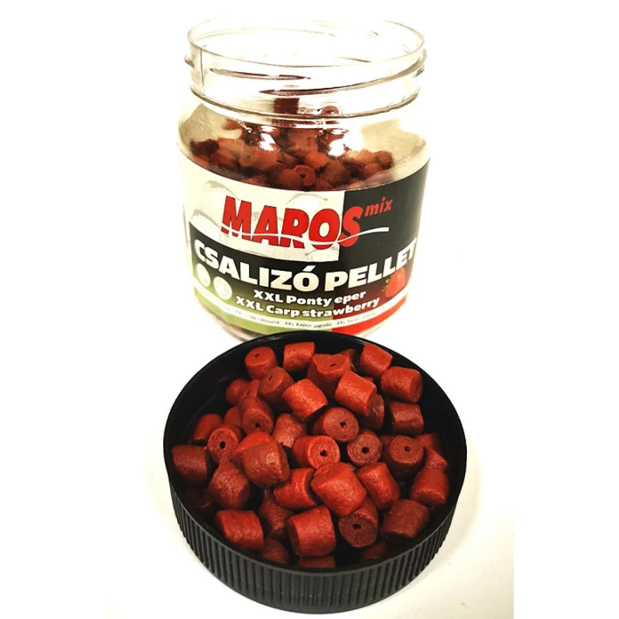 A Maros Mix XXL Ponty Pellet egy vörös színű, többféle tengeri hal lisztjével dúsított, közepes halolaj- és 40% fehérjetartalmú, süllyedő, középen fúrt pontypellet. További különleges alkotóelemei közül érdemes megemlíteni a hús-, alga- és ráklisztet is, de a domináns anyag egyértelműen a halliszt. A természetes anyagok keveréke és a rendkívül tiszta, magas koncentrációjú fehérje, valamint a közepes halolaj-tartalom egy nem hétköznapi eledellé teszi ezt a pelletet. A Maros Mix az XXL Ponty Pelletet is különböző méretekben kerül forgalomba, natúr, epres és ananászos aromával. Így minden körülményhez találunk ideális méretű, ízű csalit.