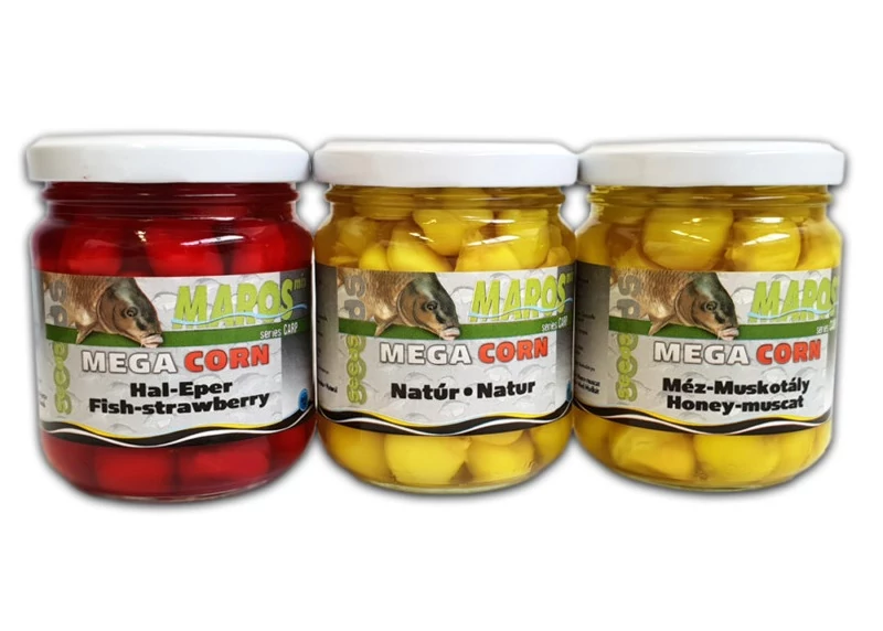 A pácolt, kifogástalan minőségű színezett kukoricaszemeket gondosan válogatják, emiatt évek múltán is megőrzik frissességüket és fogósságukat. Fenekező vagy úszós horgászmódszernél egyaránt bevethető. 220 ml-es csavaros üvegben kerülnek forgalomba.