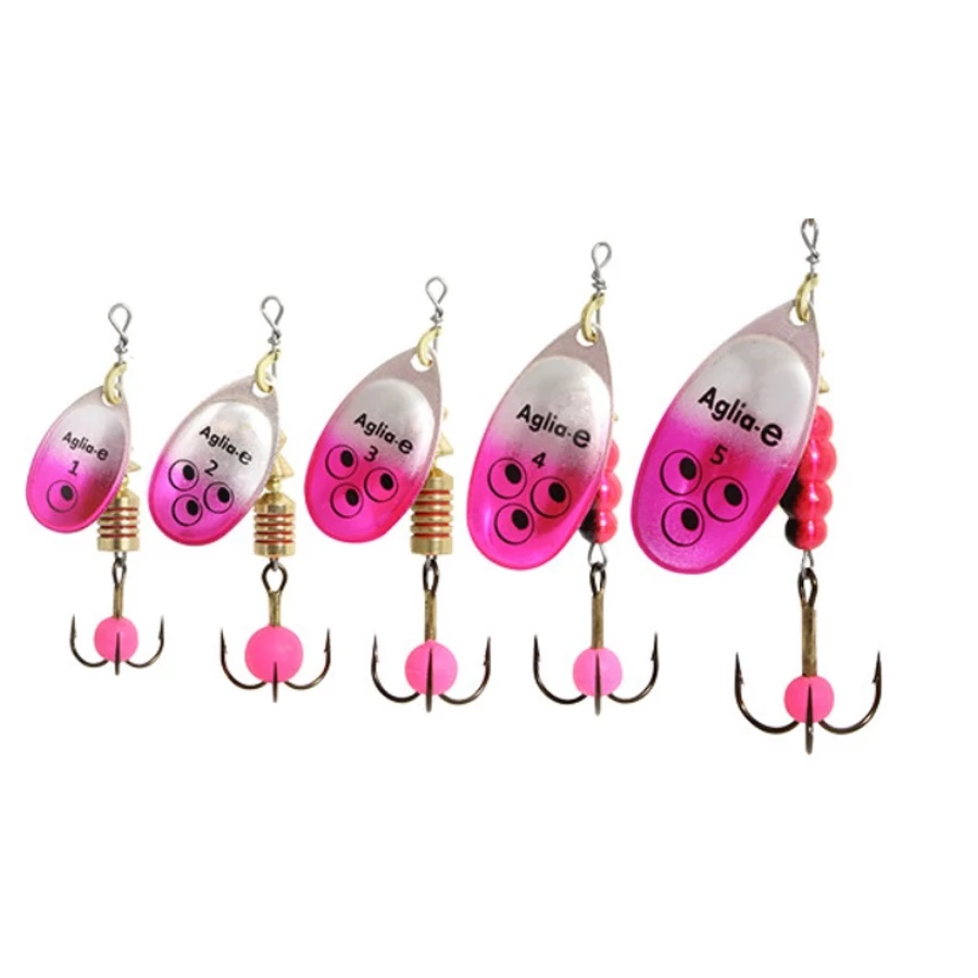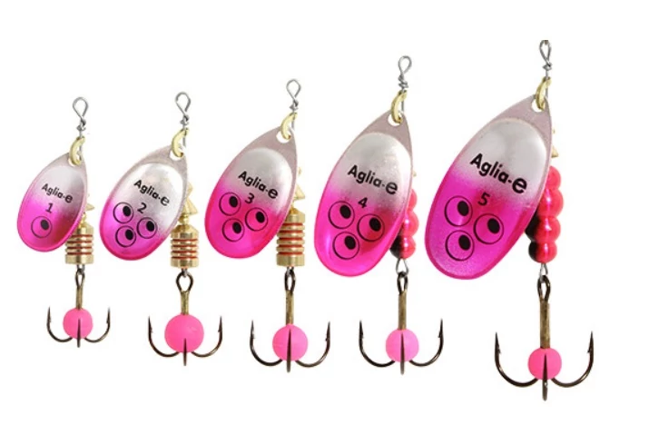 A Mepps Aglia-e körforgó az ezüst színű Aglia körforgót a halikra grafikájával ötvözi, ami sok hal kedvenc eledele. Az ívási időszakban az ikra a ragadozók fő táplálékforrásává válik. Az Aglia-e kihasználja a ragadozók ezen természetes „rajongását”. A standard Aglia-n alapul, amelyet egy speciális UV-érzékeny bevonattal vontak be. A hármashorog egy nagy „ikra” gyönggyel van ellátva, amely a víz alatt is visszaveri az UV-sugarakat, így csalogató „látványossággá” válik a ragadozók számára.