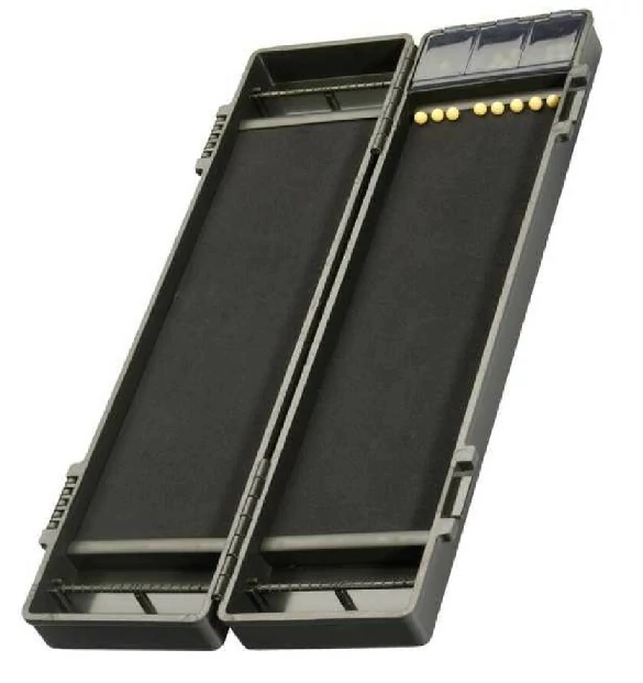 Praktikus, masszív előketartó, melyben rendszerezetten és biztonságban tárolhatjuk előkötött előkáinket, rigjeinket. A doboz rendelkezik 3db zárható aprócikktartó rekesszel is, melyben forgókat, horgokat, illetve egyéb kisméretű horgászcikkeket tárolhatunk. A doboz külsején lévő "vonalzó" segíti a pontos előkehossz megkötését. A sárga fejű gombostűk teszik egyszerűvé az előketartó használatát, melyek segítségével a már kész rigeket rögzíthetjük, így szállítás közben nem keverednek össze.