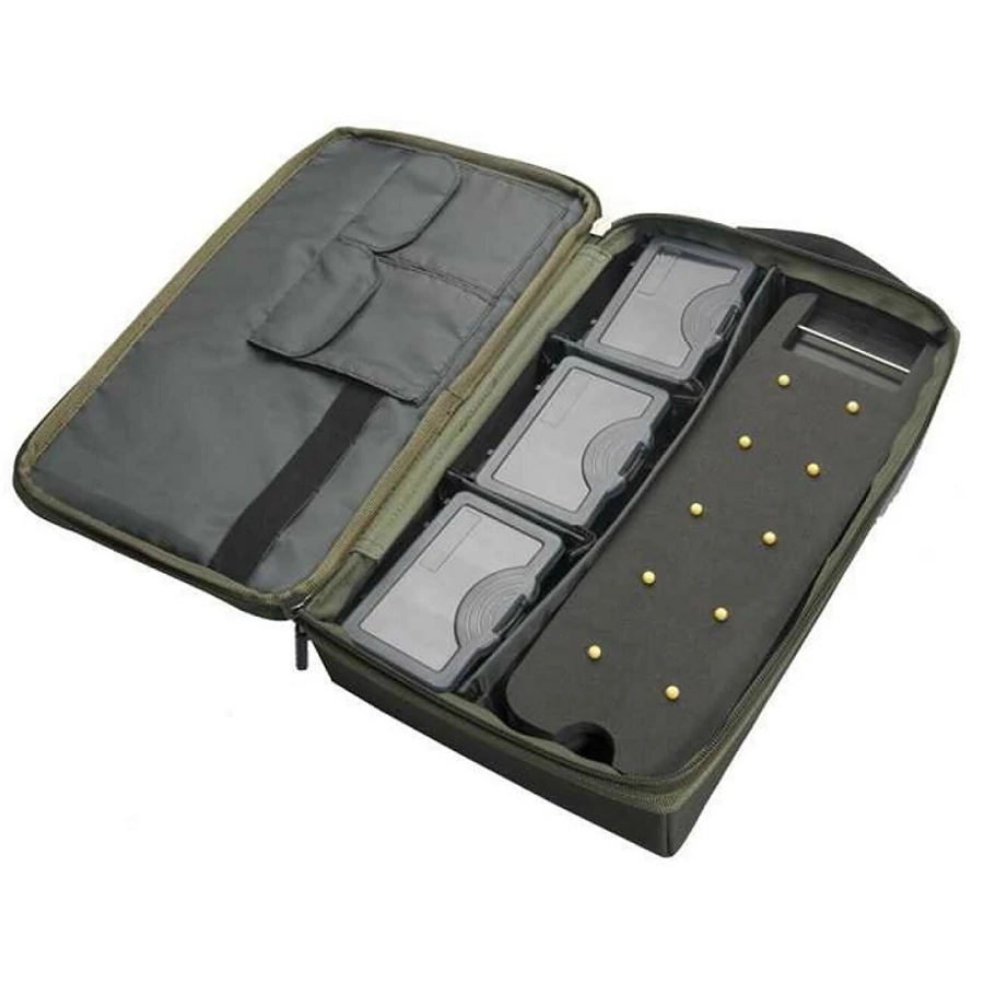 Praktikus eszköz az apró kiegészítők és előkék tárolásához. Az L modell professzionális dobozokat tartalmaz a tartozékok számára, táblát a szerelékekhez, valamint 2db belső zsebet és gumifület az egyéb tartozékok számára.