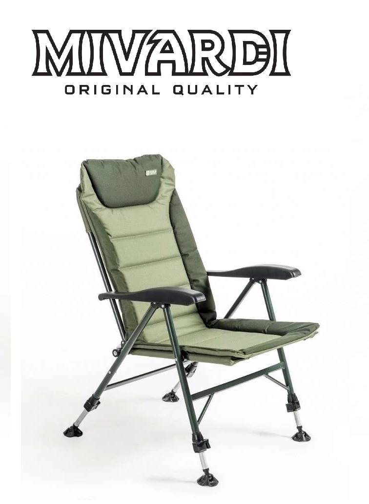 A Premium Quattro fotelek kompakt méretűek, de ugyanakkor extrém teherbíróképességgel (175kg) rendelkeznek. A háttámla dőlés szögének állítására a karfa emelésével van lehetőség anélkül, hogy fel kellene állnunk a székből. Az ülőfelület P-POL 600D anyaga rendkívül ellenállóvá és moshatóvá teszi ezt a fotelt. A fotelek lábai már a Mivardi által kifejlesztett egykezes nyitószerkezettel lettek ellátva, ami igazodik az extrém igénybevételekhez. A nagyméretű sártalpaknak köszönhetően bármilyen terepviszonyok között is stabil marad a fotel.