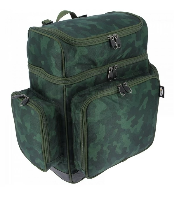 Az XPR terepszínű hátizsák két fő rekeszből áll, amelyeket egy cipzár választ el. Ezen kívül három további oldalsó zseb van a tartozékok tárolására. Vinil alappal rendelkezik, amely növeli a tartósságot és vízállóvá teszi, így nedves talajon is tárolhatjuk. Strapabíró, erős fogantyús cipzárakkal rendelkezik. Falai béleltek, így felszerelésünket biztonságban szállíthatjuk. Háttámlája és állítható vállpántjai pátnázottak, a hordozás kényelmét szolgálva.