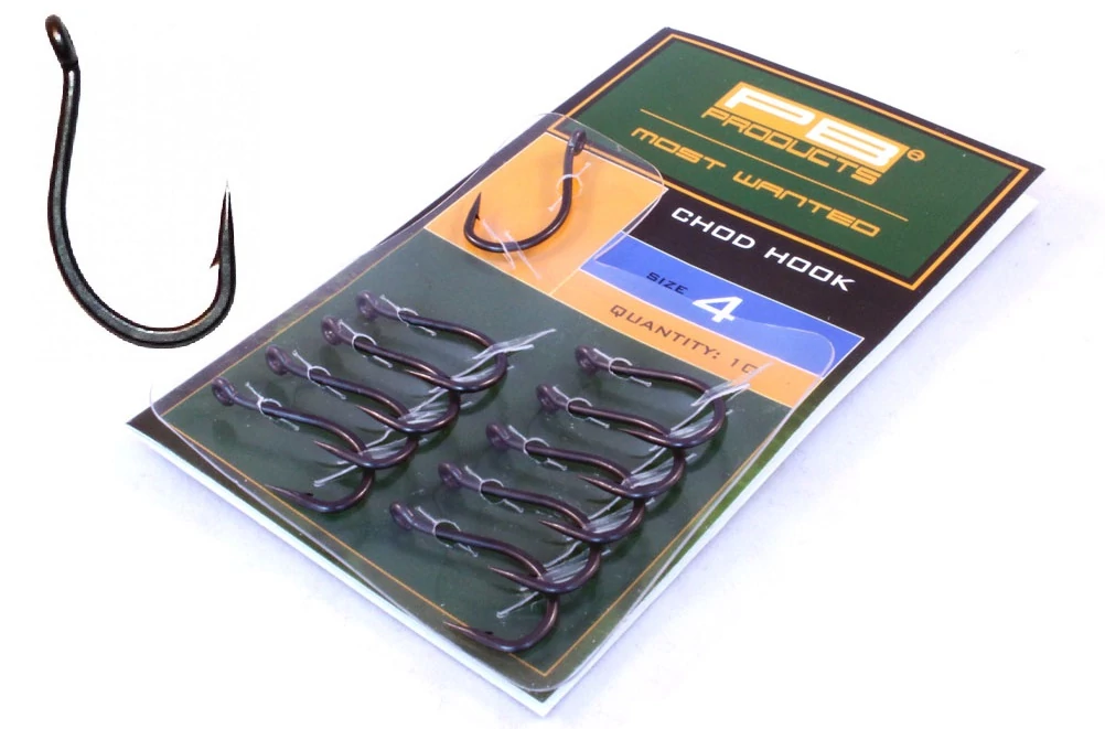 PB PRODUCTS CHOD HOOK HOROG A PB Products Chod horog kifejezetten merev előkékhez,és flurocarbon előkezsinórhoz lett kifejlesztve.A kifelé hajló horog szem, és egyenes horoghegy tökéletes akadást biztosít minden szituációban.Tökéletes választás Chod szerelékhez.
