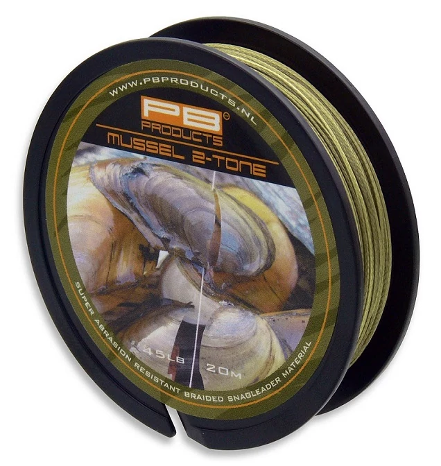 PB PRODUCTS MUSSEL 2-TONE ELŐKE ZSINÓROK A PB Products Mussel 2 Tone magas kopásállóságú, különlegesen lágy kevlárral kombinált előkezsinór. A rendkívüli terhelhetősége miatt használhatjuk akár előtétzsinórnak (snag leader) is. Extrém nehéz, kagylós terepre ajánljuk. Az előtétzsinór lágyságának köszönhetően biztosan nem fog leperegni az orsó dobjáról amint felnyitjuk a felkapókart. A halak épségének érdekében a Mussel 2-tone, mint minden más magas kopásállóságú leader zsinór használata ólomelhagyós rendszerrel ajánlott. A zsinór 20 méteres kiszerelésben, 35 lb (15,88 kg) és 45 lb (20,41 kg) szakítószilárdságú változatban kapható. Szúnyog Horgászbolt - www.szunyoghorgaszbolt.hu