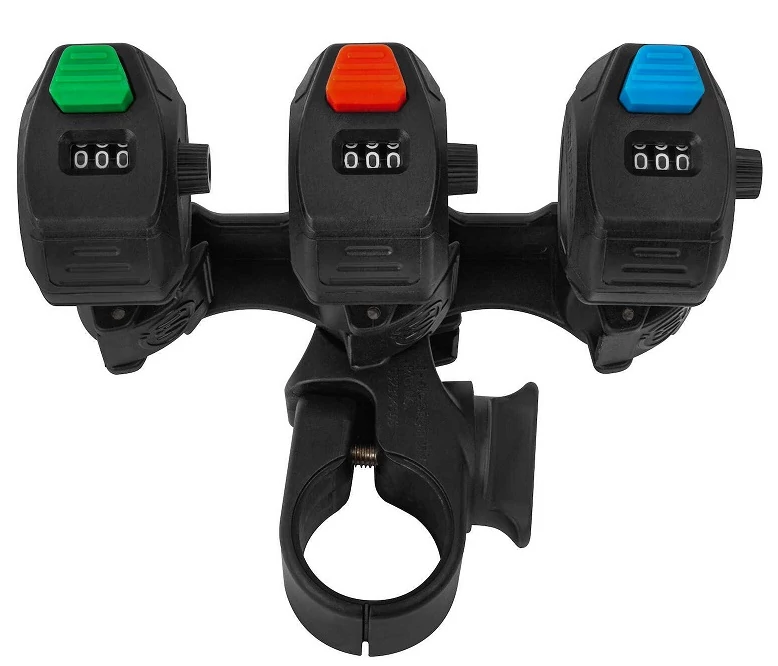 A hármas számláló lehetővé teszi a horgász számára, hogy könnyedén nyomon követhesse a behelyezett haltartók tartalmát. Működése rendkívül egyszerű a tetején található nagy gomb megnyomásával egyet ugrik a számláló, míg a kijelzőt a készülék oldalán lévő tárcsa elforgatásával lehet alaphelyzetbe állítani.
