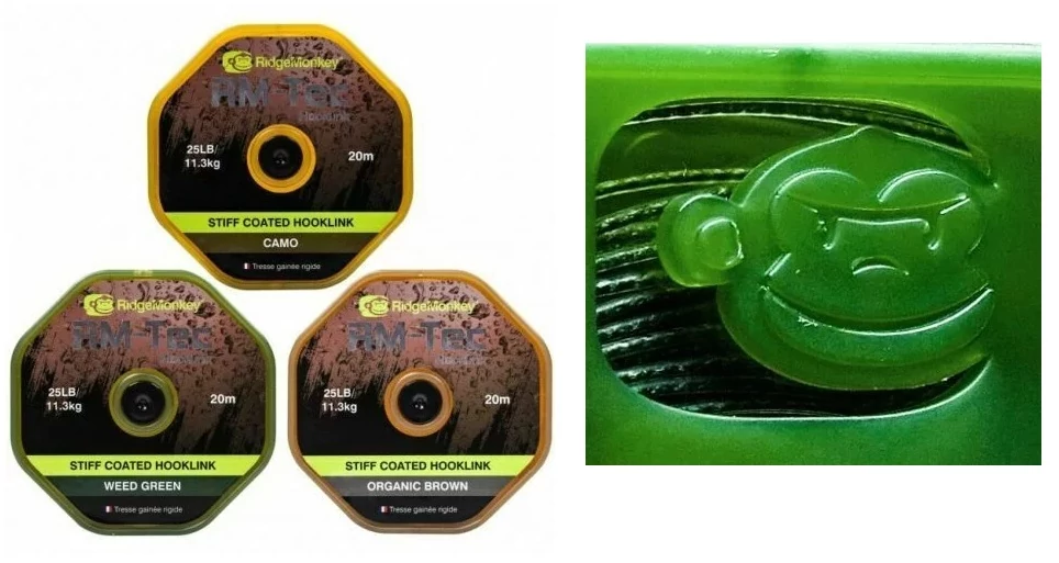 A RidgeMonkey RM-Tec Stiff Coated Hooklink előkezsinór a RidgeMonkey 2018-as újdonsága. A fonott előkezsinór merev, ellenálló, eltávolíthaó bevonatot kapott. Merevségének köszönhetően jól dobható, kiegyensúlyozott ill. lebegő csalik felkínálása esetén jól "eltartja" a csalit az előkétől.