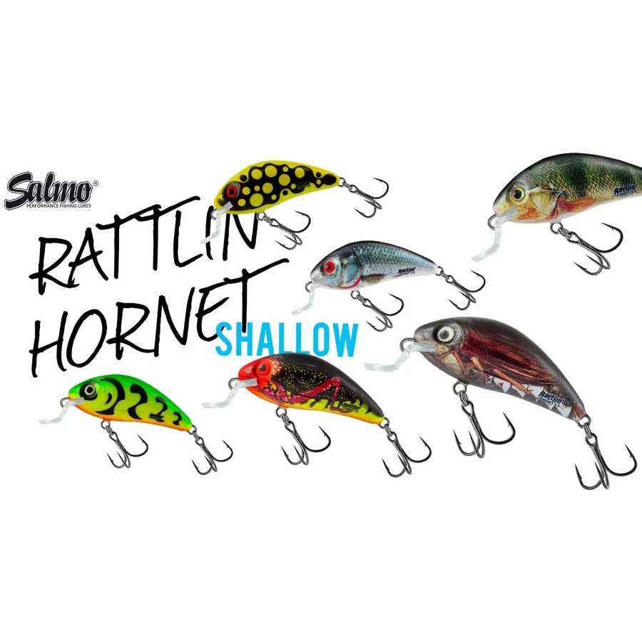 A Rattlin Hornet a továbbfejlesztett változata a Hornet családnak. Mint a nevében is benne van egy csörgős wobblert vehetünk kezünkbe, amely plusz inger a ragadozók számára. Ez a wobbler is megkapta az Infinity Cast rendszert, ami által a dobásaink hosszabbak tudnak lenni, ezáltal nagyobb területet tudunk átvizsgálni. A horgok minőségi Mustad KVD, az orrában a kulcskarika, ovális, 3D szemek és még sorolhatnánk azokat a tulajdonságokat amelyek egy igazi univerzális csalivá teszik a Rattlin Hornetet. Ezért is van az, hogy a Rattlin Hornet nem válogat a halak között, ezzel tényleg szinte minden ragadozó becsapható.